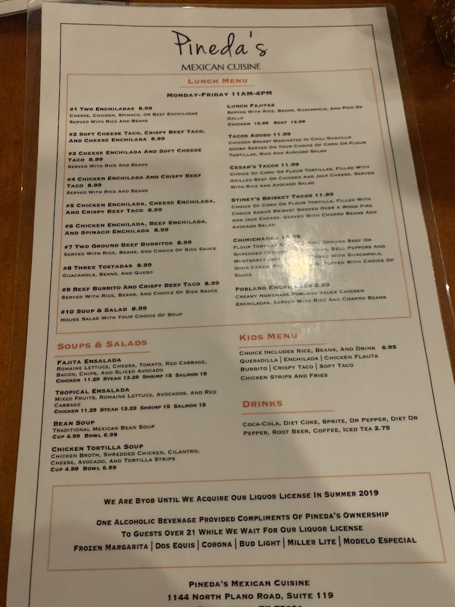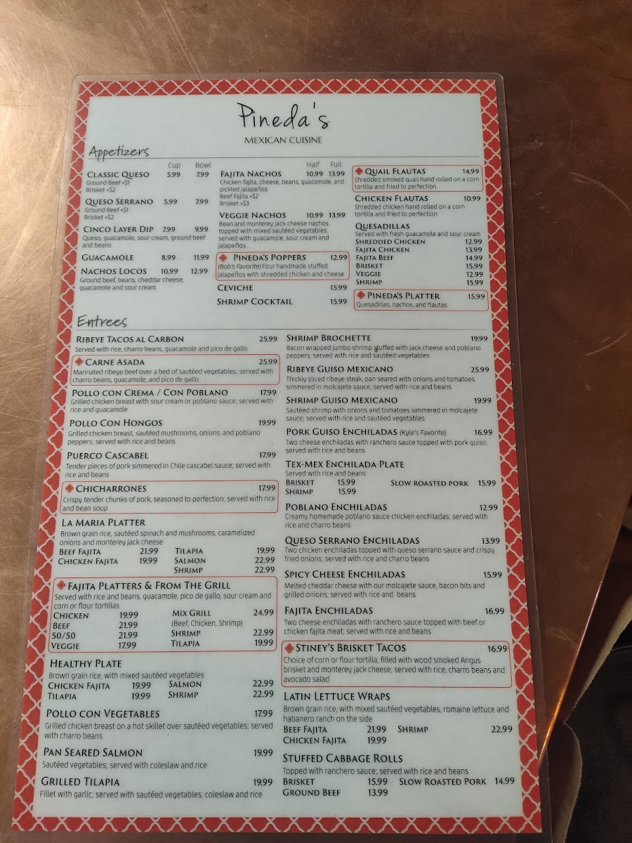 Welcome to Pineda’s Mexican Cuisine, an authentic culinary gem located at 1144 N Plano Rd, Richardson, TX. The vibrant flavors of Mexico come alive through a thoughtfully curated menu. Guests rave about the Poblano Enchiladas, praised for their rich taste and impeccable preparation. For lunch enthusiasts, the Ramon’s tacos with fajita beef and Guiso burritos stand out, highlighted by friendly and attentive service.