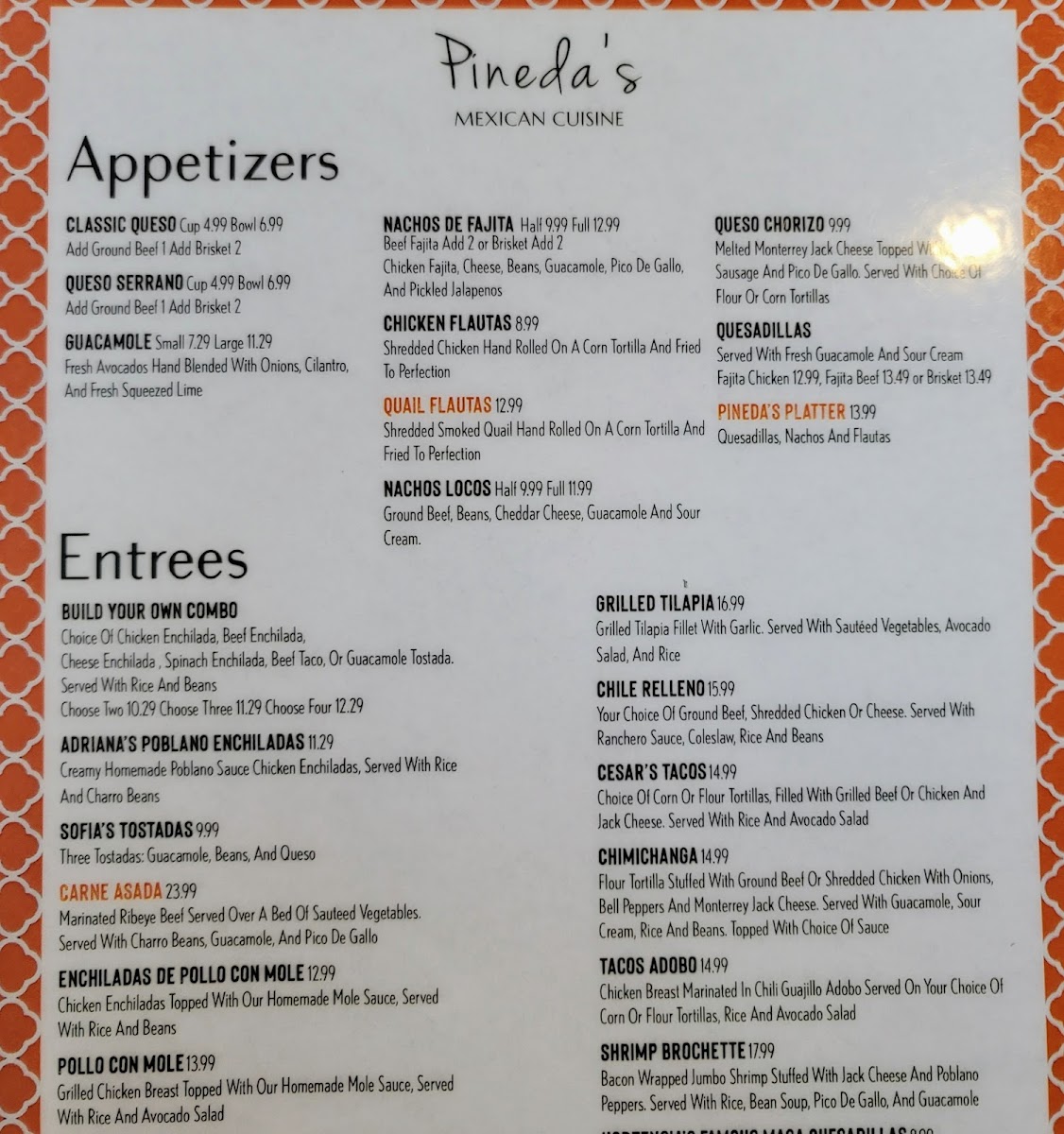 Make sure to indulge in the brisket tacos and the perfectly seasoned rice and beans. The enticing atmosphere complements the dining experience. Diners appreciate the complimentary bean dip and crispy chips with salsa, which strikes the perfect balance of spice. The flavorful flautas served with guacamole and sour cream are a must-try. Overall, Pineda’s invites you to savor the warmth of Mexican hospitality while enjoying every bite of exquisite cuisine.